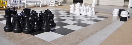 | This Giant Chess Set is located at the Pismo Lighthouse Suites. There are also checkers pieces. [map] |