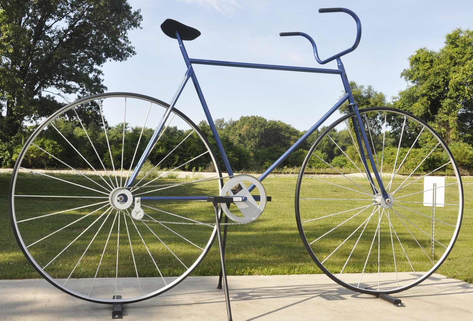 The Big Green Bike in Casey was installed by 2015. [map] This Giant Bicycle in North Judson was installed by 2023 at the Public Bicycle Repair Stand and Pump along the North Judson Erie Trail. [map] |