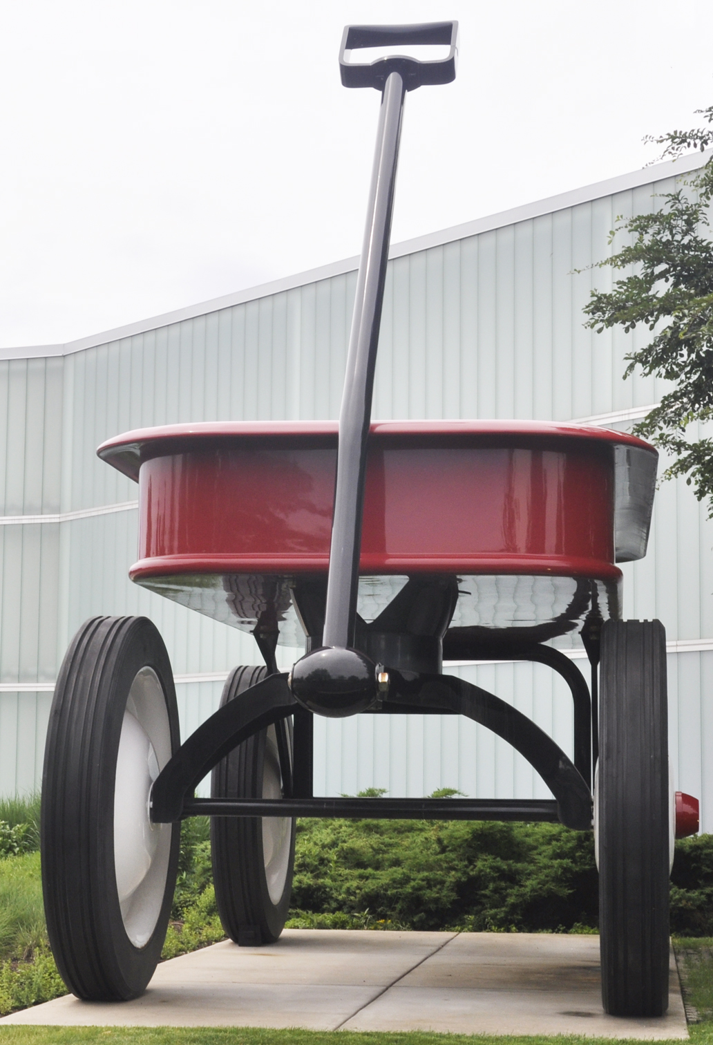 The 27-foot-long Giant Radio Flyer Wagon in Chicago is located on the lawn in front of the company's headquarters. It was built in 1997 as a tribute to the 45-foot-tall model that the company built for the 1933 World's Fair. Radio Flyer has been making wagons since 1917. In 2016, this giant Wagon was removed for a restoration. In 2017, it was displayed in downtown Chicago before returning to headquarters. For more, see this website. [map]