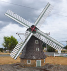 A small windmill stood in front of the Dutch Mill drive-in which opened in the 1940s. It operated at this location which later came to be known as Miller's Corner. The Dutch Mill operated until at least 1979. In 2000, the property was sold and a gas station was built. The windmill was in bad shape by then. This replica was built, in a Danish rather than Dutch style. It was flattened by a car at some point and then rebuilt in 2012. The windmill is 30 feet tall. [map]