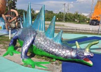This Panama City Beach course was Koplin's biggest. He even lived on site with his family. From the beginning, Goofy Golf focused on oversized and outrageous cement figures. The chain spread throughout the South and soon competition and imitators arose in Florida (Holiday Golf, Zoo-Land Golf, Magic Carpet Golf, Fantasia Golf, Wacky Golf), Tennessee (Goony Golf and Jolly Golf), Alabama (Spooky Golf), South Carolina (Wacky Golf), and Mississippi (Fun Time Golf). For more, see these websites: 1 and 2. [map]