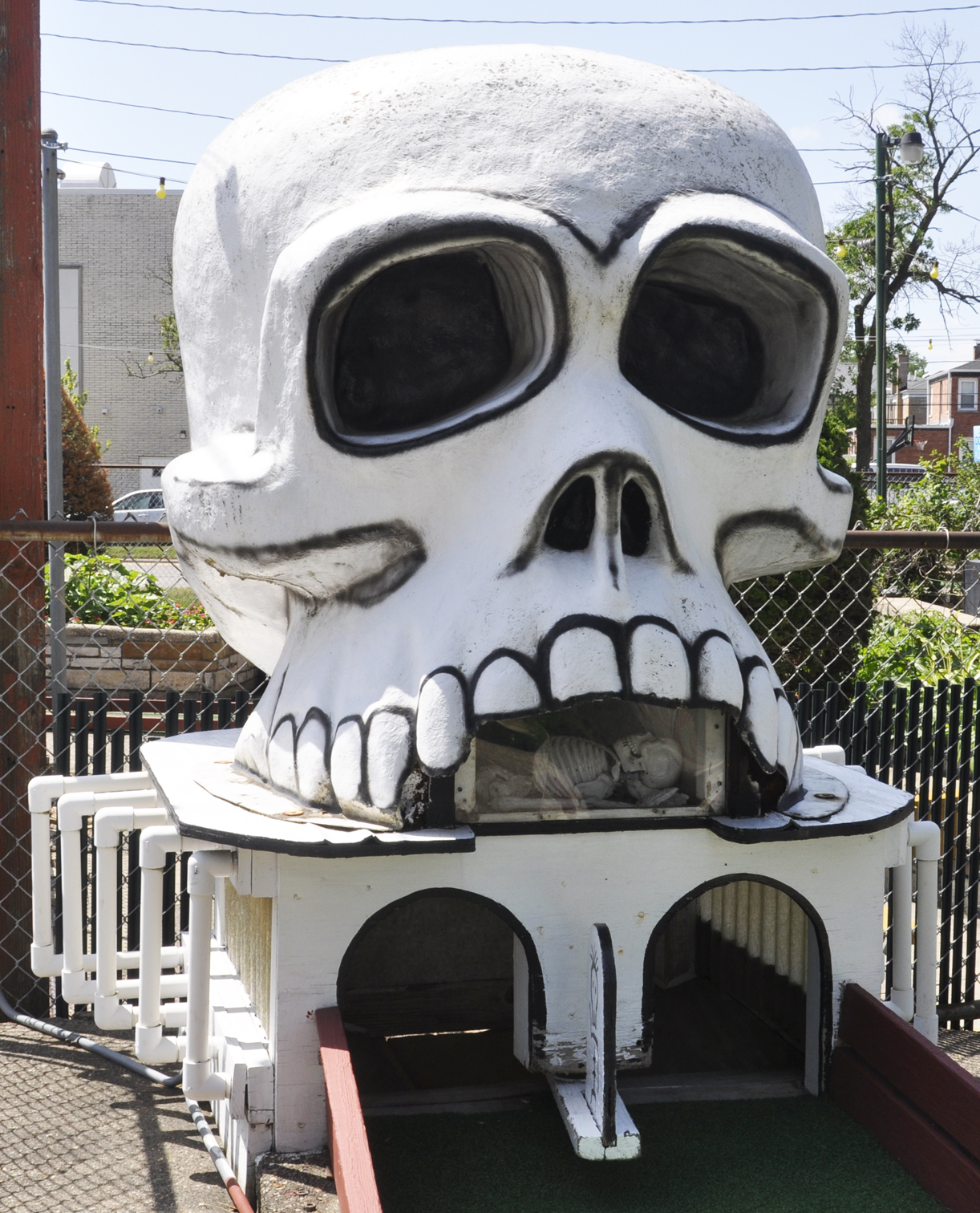 This unique course is known as Ahlgrim Acres. It is located in the basement of Ahlgrim's Funeral Parlor. The course was built in 1964 to entertain the owner's children and employees. The nine holes have references to coffins and death. There is also spooky music and vintage games. For more, see these websites: 1 and 2.