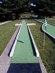 The Championship course offers angled clubs with has chip-and-putt style targets and elevated tees. I have never seen this approach to miniature golf. You wail away at the bulls-eye target to get the best shot towards the hole. There is good reason for all that chain-link protective fencing! Many of these holes also have difficult water traps and angles. There are also some very long holes on this course as well. All three courses have eighteen holes and traditional brick and concrete framing. Mitchell's also has a driving range and batting cages. It has previously gone by the names of Tom Mitchell's Golf Gridiron and the Mid-Atlantic Golf Center. For more, see this website. [map]