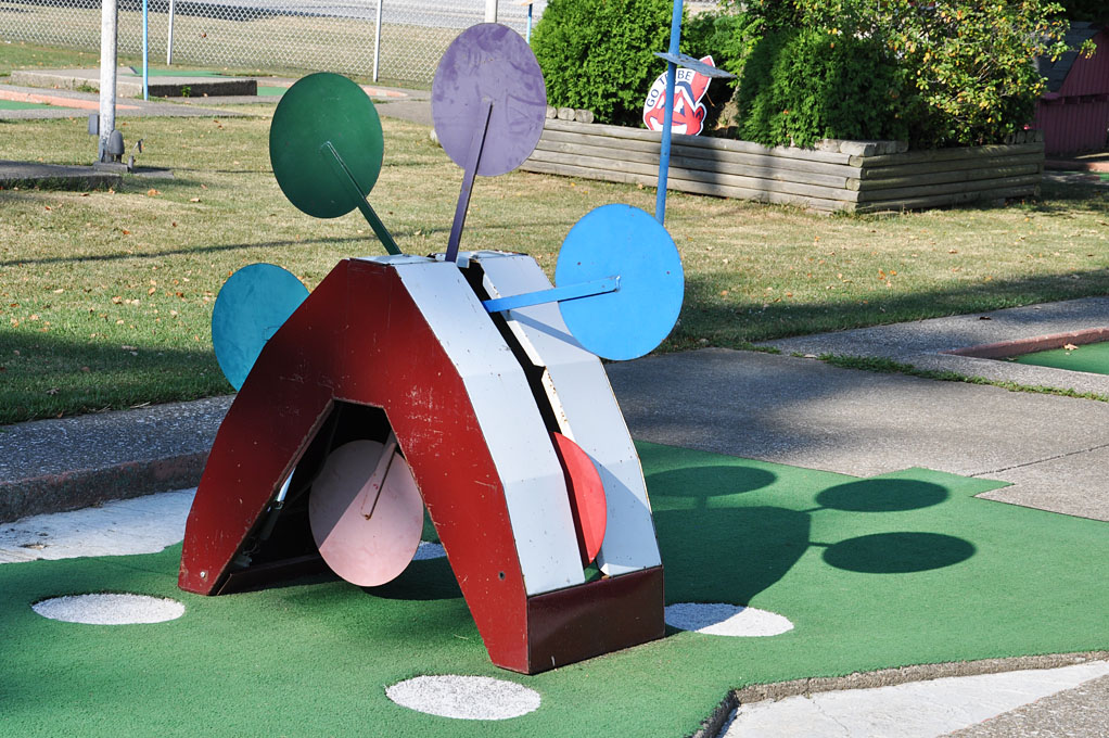 | This Goofy Golf course is not all that goofy but it's still fun. I don't think it was ever part of the Goofy Golf chain. There are two 18-hole courses with some tricky holes, some regional references and nice new carpeting throughout. It is part of an amusement center with go-karts, bumper boats, and an arcade. [map] |