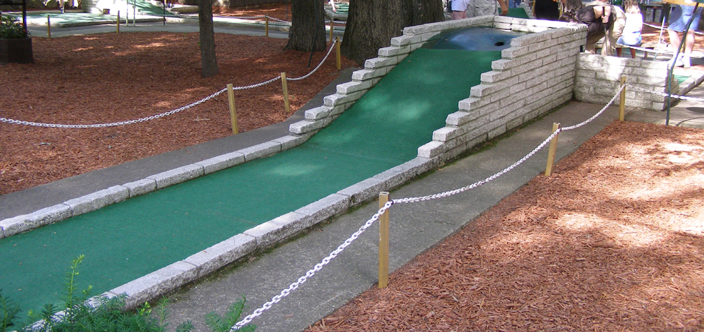 The Knoebels Amusement Park course was built in the early 1960s. The greens are on the large size and the obstacles are original. Since there is no admission charge to visit this amusement park, it's very practical to go there just for the sake of the mini golf.