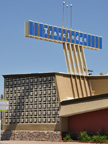 The revolving, round Compass Room restaurant was built on top of the Hyatt Regency in 1976. The restaurant makes one revolution every hour. The building was designed by Charles Luckman. For more, see this website. [map]