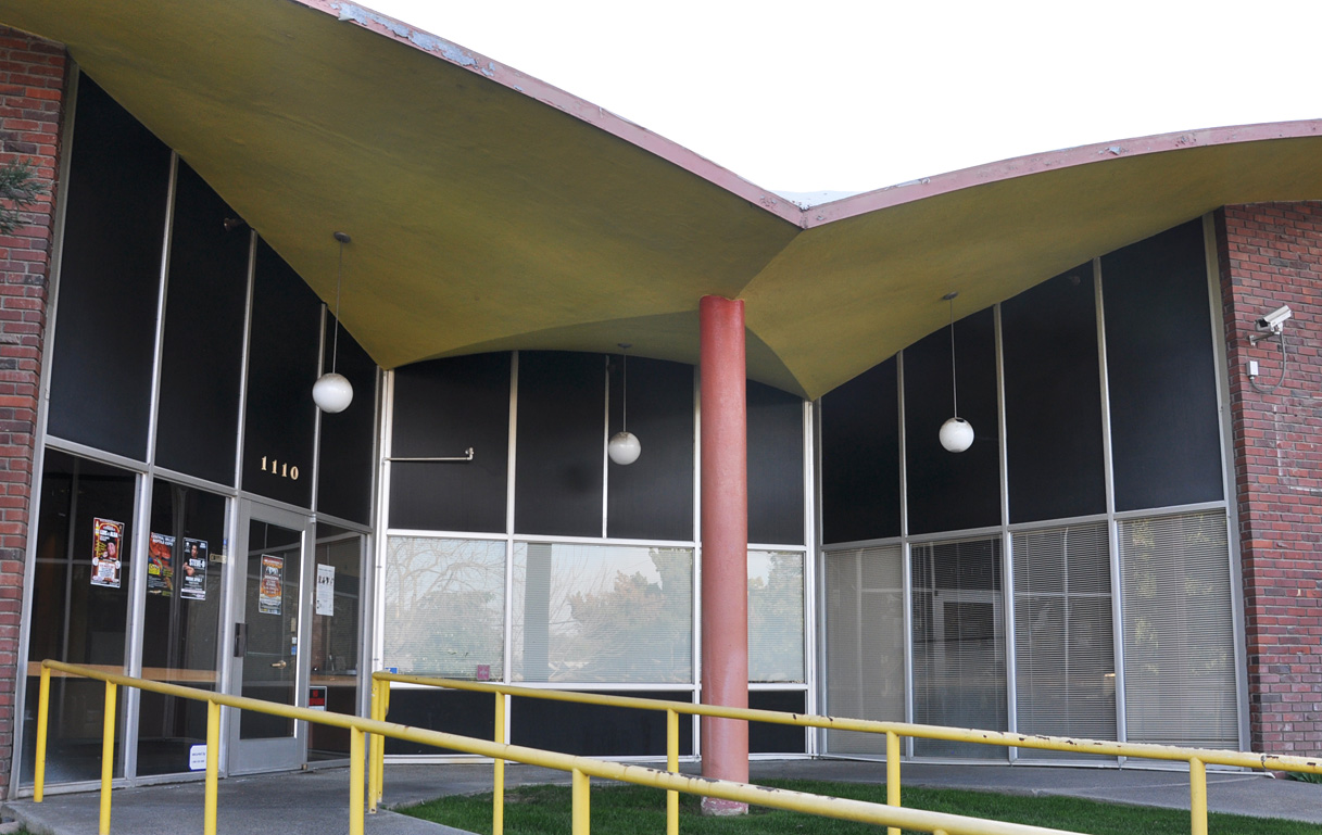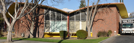 | This former State Savings and Loan Association was built in 1965. It shares the same design as the two buildings shown below. The buildings have dome skylights. The two buildings below might also have had tile like this one originally. [map] |