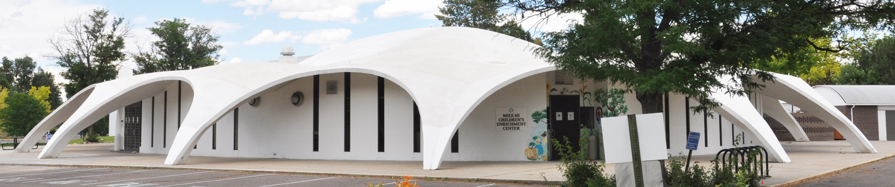 | The Mile Hi Church was built from 1970-1973. The dome was created by pouring concrete over a dirt mound. This construction technique explains the lunar landscape-like interior ceiling texture. The building appeared as a McDonald's in the Woody Allen 1973 film, "Sleeper". In 2008, a monolithic dome (bottom photo above) was added to the property to serve as the new sanctuary. For more, see this website. [map] |