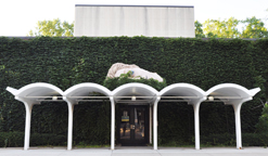 | McPherson Hall at Illinois Wesleyan University was built in 1962 for the School of Drama. It is now known as the McPherson Theatre. The head of Aphrodite was created in 2002 for as a prop for the "Big Love" production. After it was over, it was installed permanently on the canopy. [map] |