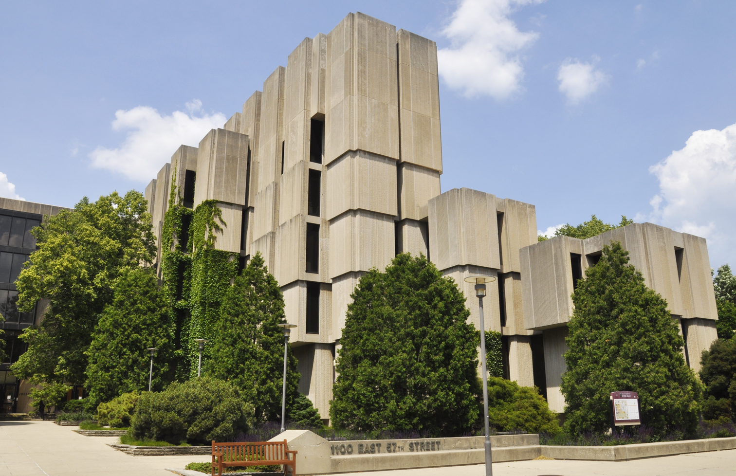 | The Joseph Regenstein Library at the University of Chicago was designed by Walter Netsch of Skidmore, Owings & Merrill and built from 1968-1970. For more, see this website. [map] |