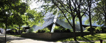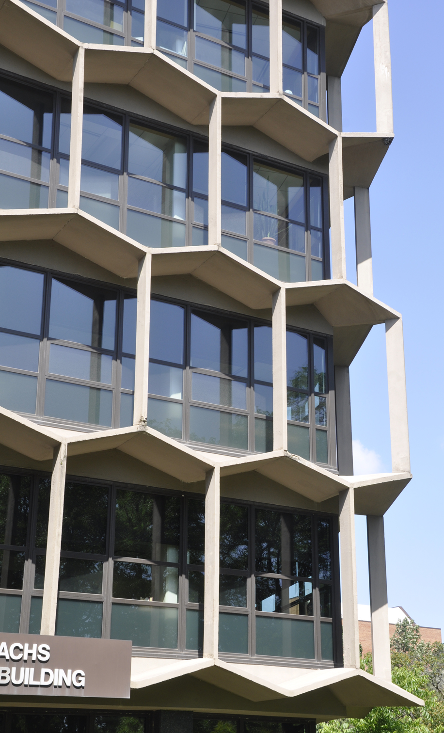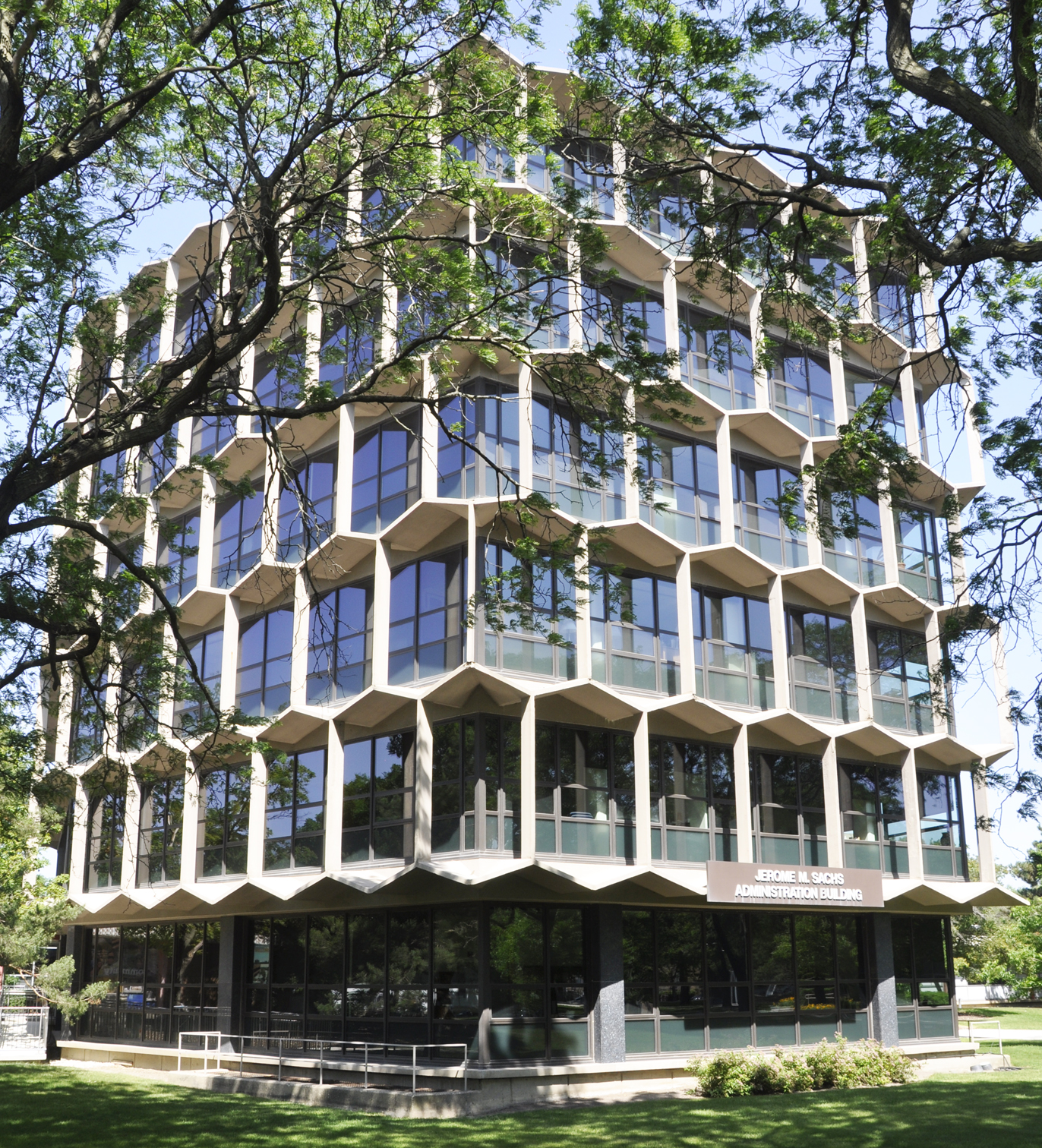 | The Jerome M. Sachs Administration Building at Northeastern Illinois University was designed by Perkins & Will and built in 1961. It was originally known simply as "Building C" and nicknamed the "Beehive Building" because of its honeycomb-like appearance. [map] |
