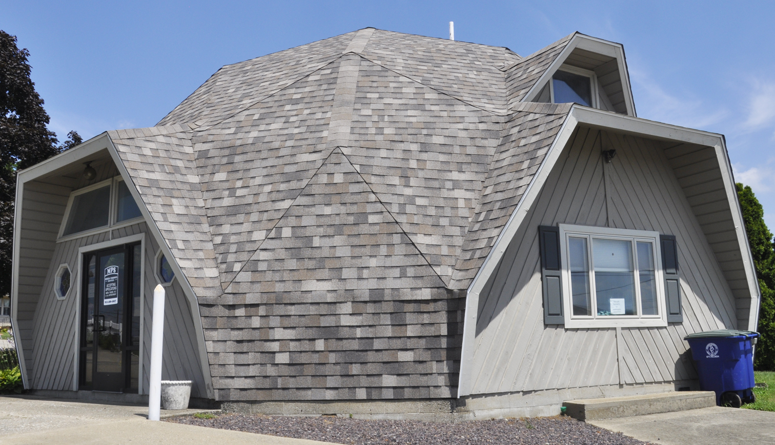 This geodesic dome was built in 1981. It has housed Modern Personnel Services since at least 2007. [map]