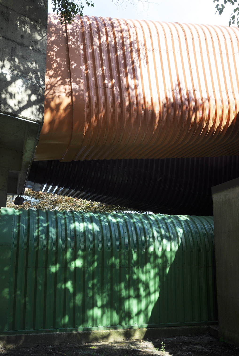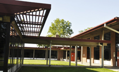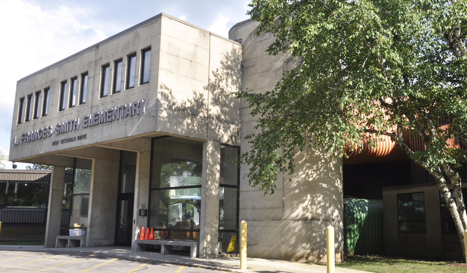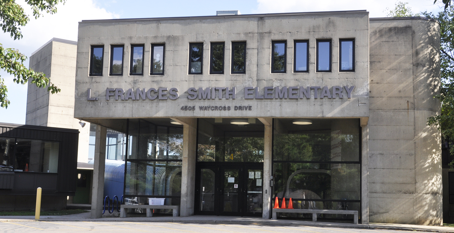 The L. Frances Smith Elementary School was designed by John Johansen and built in 1969. The colorful, hallway connecting tubes have been nicknamed the "gerbil tubes." [map]