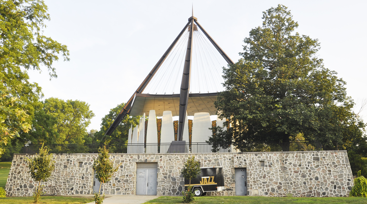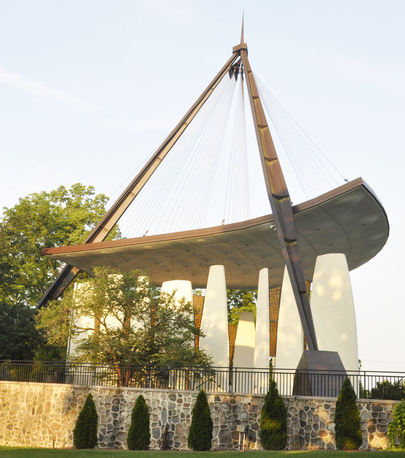 The Al G. Wright Stage was designed by Joseph Baker who was inspired by Stonehenge. It was built in 1964 and is used as Purdue University's Slayter Center of Performing Arts. For more, see this website. [map]