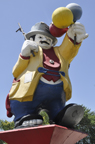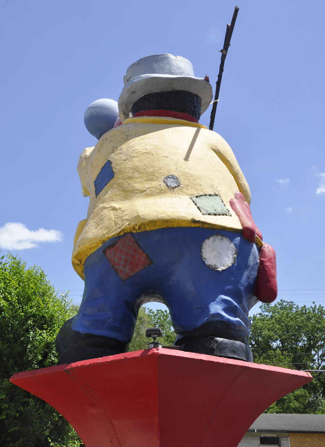 This Ruben's building shares the same design as the Chic's Liquors location described above. Originally, this restaurant was known as Arman's. This hobo statue was designed by Richard Kishel and produced by his Art Forms Workshop in Muncie, IN in 1967. I assume the building was from the same time. Its design may have been inspired by the statues produced for the Hobo Joe's coffee shop chain. In 2025, Ruben's closed and the building began housing Arnie's Dog House. The Ruben's sign was removed. The statue was sold at auction and its location is unknown. [map]