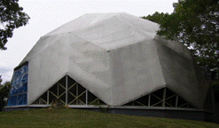 | The Nautilus Motor Inn's Dome Restaurant was built in 1953. The geodesic dome is 54 feet in diameter. It was designed by students in a studio taught by Buckminster Fuller at MIT and is the oldest Fuller dome still in existence. The first one was built in Dearborn, MI to enclose the Ford Motor Rotunda but that one burned down. The dome had not been in use for many years. In 2021, restoration of the dome began. For more, see this website. [map] |