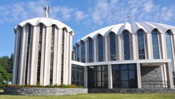 | St. Michael's Church, aka the "Fisherman's Church", was built in the 1960s. It was designed by James Canizaro. The church's round shape may have contributed to its survival during Hurricanes Camille and Katrina. After Katrina in 2005, the church's interior was basically gutted and much of the stained glass needed replacing. The church was reconsecrated in 2011. These photos are from 2019. For more, see these websites: 1 and 2. [map] |