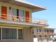 | The Imperial 500 Motel opened in 1964. In 1978, another wing was added which doubled the motel's size. These curved railings are a common element in Wildwood motels. For more, see this website. [map] |