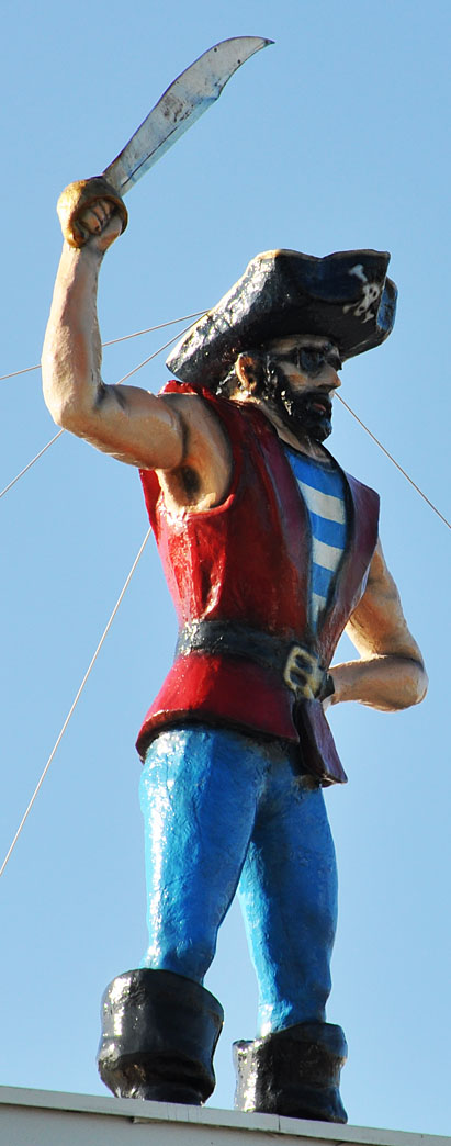 | The Jolly Roger Motel was designed by Will Morey and Palmer Way. It was built in 1959. The larger-than-life pirate statue has been on the roof of the office since the motel opened. It is put in storage during the winter. Employees refer to the statue as "Jolly". [map] |