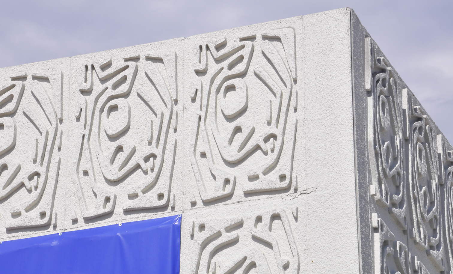| The Downtowner Motor Inn was built in 1965. Over the years, it was known as the Downtown Inn, the Downtowner Inn, a Quality Inn, and a Ramada Inn. In the 1990s, the motel was remodeled in an Art Deco style for the Hotel Blue. The mid-century modern canopies remained intact. Around 2018, the building was painted brown, red, and beige. In 2019, the hotel closed and renovations began to bring back the original mid-century look. The hotel has now been renamed the Arrive Hotel. A tall sign in the style of the original Downtower sign has been built. The ground floor will be used for restaurants and shopping. For more, see these websites: 1, 2, 3, and 4. [map] |