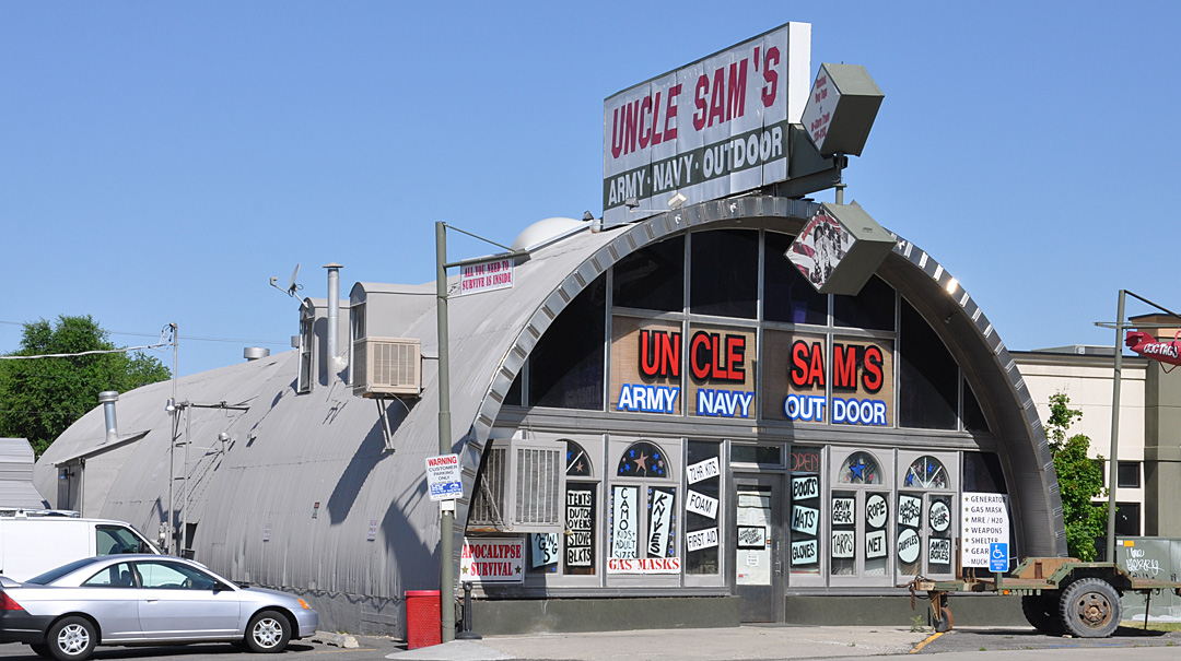 Uncle Sam's occupies a Quonset hut building. The building has been here since at least the early 1970s. [map]
