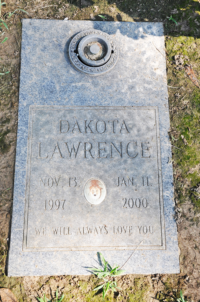 | The Faithful Friends Pet Garden is located at the Sunset Hills Cemetery. The pet cemetery was established in 1999. All the pet grave markers are the same size and style as per the cemetery's rules. |