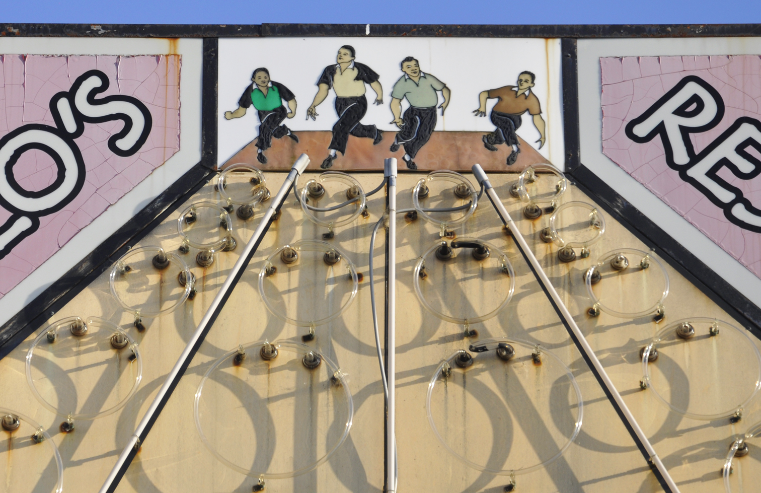 The Bowlero Lanes sign appears to be from the 1950s. For more, see this website. [map] |