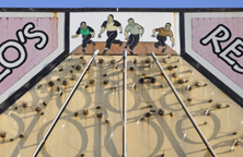 This sign originally advertised for Shula's 31 Bowl and was built in 1964. Shula's 31 Bowl closed around 2002. In 2004, the bowling alley was remodeled for Joey Armadillo's and the sign was adapted as well. The red, backlit plastic sign panels on the corner panels were replaced for Joey's. However, the original Shula's backlit plastic panel with four bowlers was kept. The original porcelain enamel panels with red neon bowling balls lit top to bottom into the "Bowl" text in a five-part sequence were also left intact. The balls are only partially lit now. The gap beneath the sign panel may have held another neon panel originally. The original, backlit plastic readerboard with manually-changed letters below the sign was replaced around 2019 with an electronic message board. For more, see these websites: 1 and 2. [map]