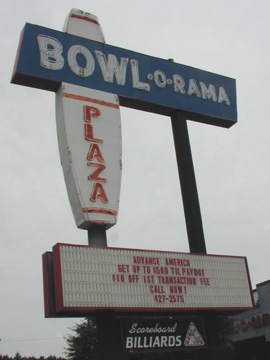 The Kim Bowl opened in 1956 and this sign is probably from then. The business is closed but this sign remains. For more, see this website. [map] |