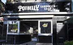 Erickson Jewelers opened in the early 1940s. At some point, an "Omega" panel was attached to the sign covering up "Elgin." The store closed in 2008. In 2010, new panels were built to adapt the sign for a Potbelly Sandwich Shop. The clock was replaced as well. The name was changed on the vitrolite facade. [map] |