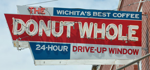 The Donut Whole opened in 2008. This is a reworked sign from a previous business. [map]