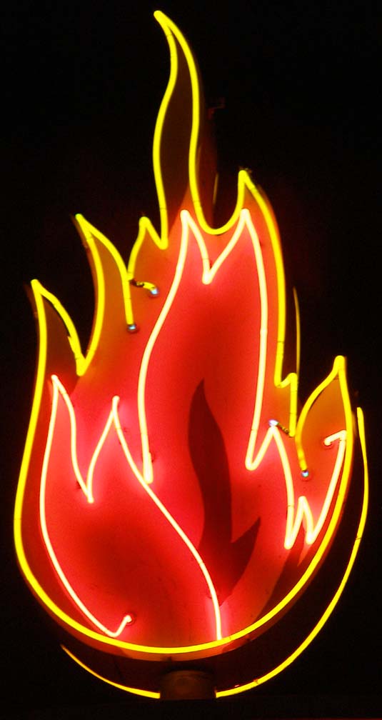 Torch Cafe (Tuskegee, AL) Clark Gas Co. (Tuscumbia, AL) [map] Arkansas Louisiana Gas Company Building (Pine Bluff, AR) Screaming Banshee Pizza (Bisbee, AZ) Rice Bowl Restaurant (Bakersfield, CA) Crestview Lanes: 1, 2, 3 (Carmichael, CA) [gone] Sequoia Gas Co. (Fortuna, CA) [gone] Magic Lamp Inn (Rancho Cucamonga, CA) Condes' Restaurant (Universal City, CA) Firelite Shopping Center (Orange, CT) [gone] Jimbo's Pit BBQ (Tampa, FL) Dixie LP Gas (Martinez, GA) BAC Cinema (Belleville, IL) [vintage; gone] Klemm's Candlelite Cafe (Fort Wayne, IN) Flame Show Bar (Detroit, MI) [gone] Decock Bottled Gas (Escanaba, MI) [gone] Ted & Gen's BBQ Restaurant (Aldrich, MN) [gone] Axel's Bonfire (St. Paul, MN) [gone] St. Clair Broiler (St. Paul, MN) [gone] Flame Theatre (Wells, MN) Triangle Motor Inn (Jacksonville, NC) The Flame (Las Vegas, NV) Starfire Motel (North Tonawanda, NY) Cotton-Eyed Joe's Barbeque (Claremore, OK) [gone] Richardson Fuel Company (Nowata, OK) [gone] Automatic Heat: 1, 2, 3 (Eugene, OR) [gone] gas company (Portland, OR) [vintage; gone] Equitable Gas Co. (Pittsburgh, PA) [vintage; gone] Tiki Lounge (Pittsburgh, PA) The Hearth Restaurant (Martin, TN) Lone Star Gas (Dallas, TX) [gone] Charcoaler Drive-in (El Paso, TX) Lone Star Gas Company (Fort Worth, TX) The Corral (Victoria, TX) [gone] Lee's Mongolian Bar-B-Q (Ogden, UT) Red Carpet Inn (Harrisonburg, VA) [gone] Olympic Inn (Aberdeen, WA) [gone] Flame Ballroom: 1, 2 (Seattle, WA) Frontier Room (Seattle, WA) [gone] Washington Energy (Seattle, WA) Wisconsin Gas Building (Milwaukee, WI) Steak Pit (Washburn, WI) If you know of any other flame signs, I'd love to hear from you. |