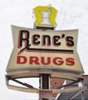 Rene's Drugs was established in 1936. The store closed many years ago but the 1960s-looking sign remains. [map]