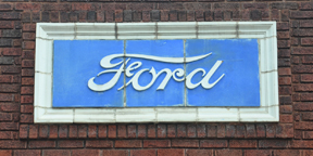 The former Ford dealership building appears to be from the 1910s or 1920s. The building was gutted by 2009 and appears to still be vacant. [map]