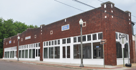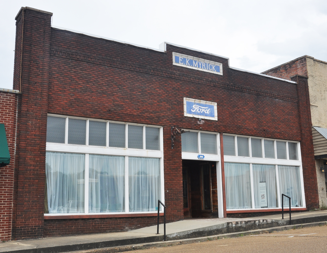 The Liston P. Durden Building was built around 1920. E. K. Myrick was the first Ford dealer in Mississippi and he had at least five other garages other cities including Winona (shown below). Since around 2002, the building has housed the Viking Training Center which has a demonstration kitchen for Viking Range appliances. For more, see this website. [map]