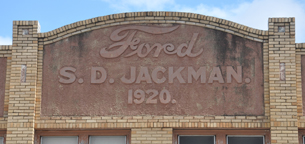 | The Jackman Ford dealership was supposedly built in 1920. However, city telephone directories show that the dealership was there in 1919. The building also served as a garage at the time. It has not been used for car-related businesses for many years. [map] |