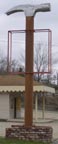 This giant hammer sign stood in front of a closed hardware store since at least 2007. In 2016, Q's Cool Tools & More moved into the building and new panels were installed on the hammer. [map]