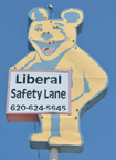 The bear sign at the Turner Body Shop previously advertised for the D&T Body Shop. The sign was adapted for Turner around 2016. The sign is probably from the 1950s. For more, see this website. [map] Liberal Safety Lane opened in 1951. This sign may have been installed then. It originally had neon. [map] |