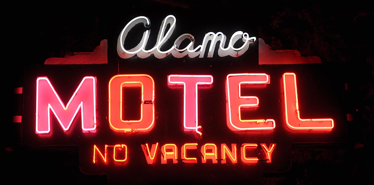 | The Alamo Motel was built in the 1940s. This sign is probably from then. [map] |