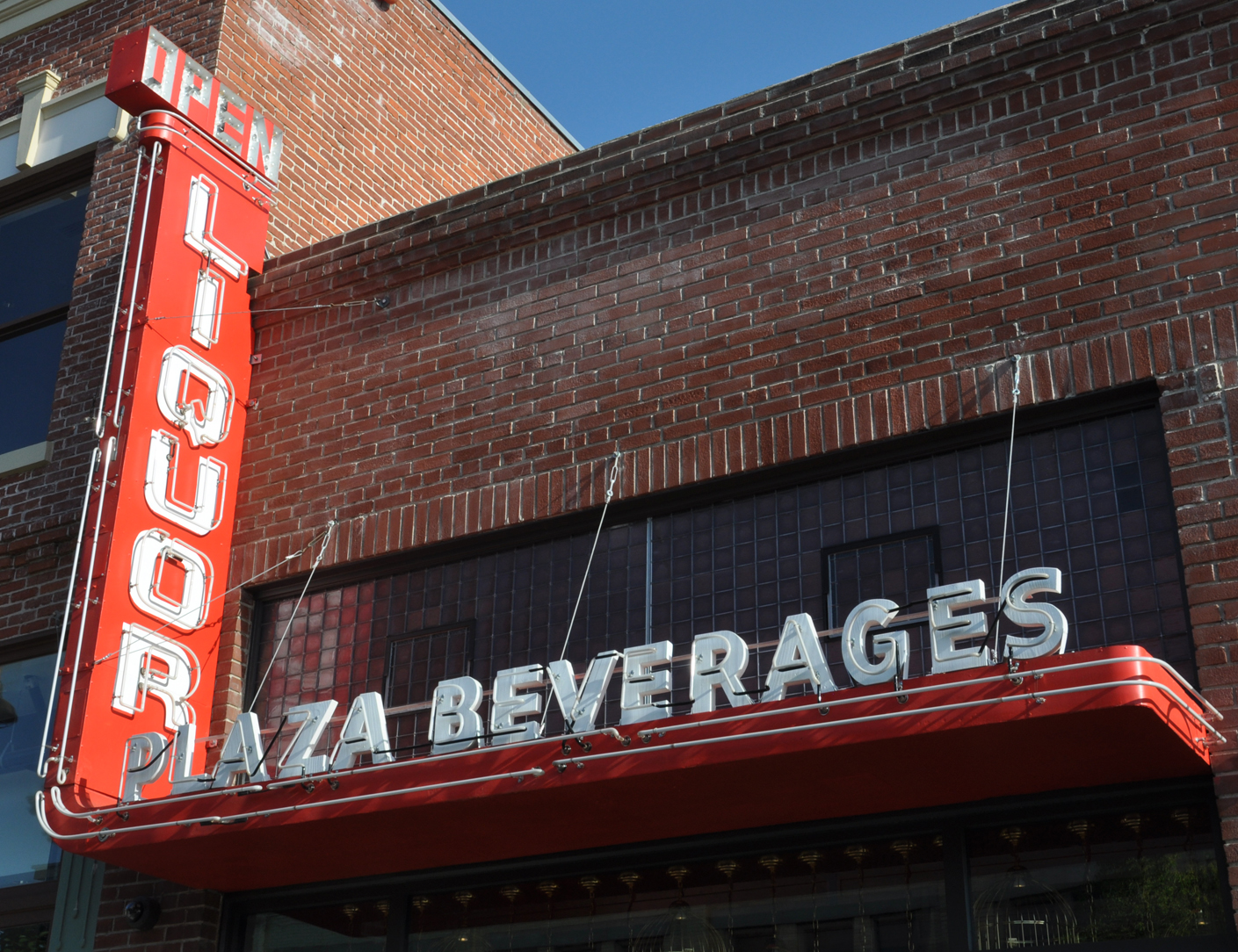 | The Rod's Plaza Beverages liquor store opened in 1949 and closed in 2020. The building now houses Bosscat Kitchen & Libations but the signs have been kept in place. For more, see this website. [map] |