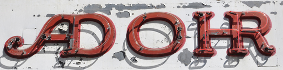 | The Adohr Milk Farms sign is from the 1920s. It was discovered under a mansard roof in 2020 while the building was building restored for Howlin' Ray's restaurant. The sign was restored by by Paul Greenstein and reinstalled in 2021. For more, see this website. [map] |