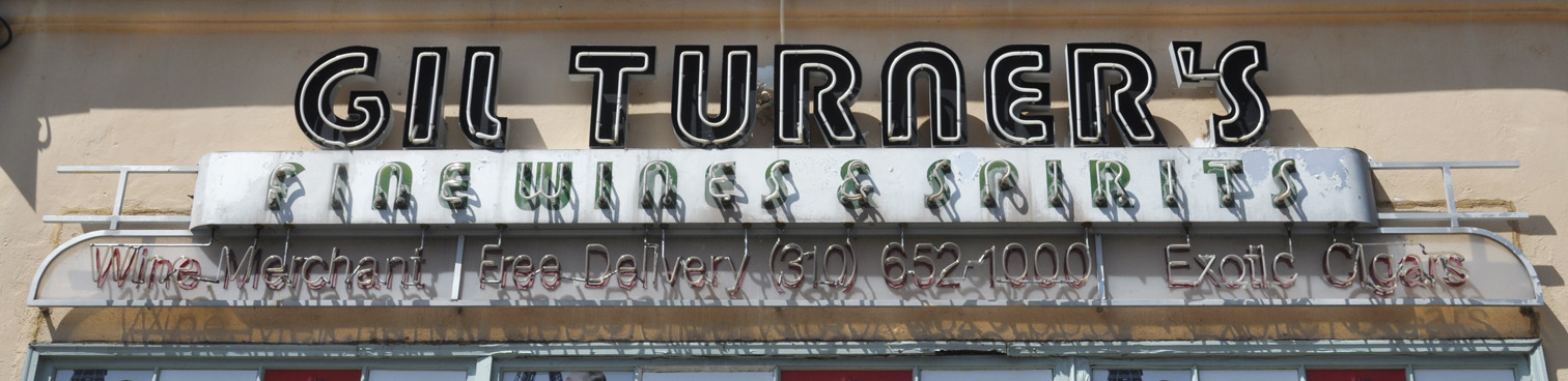 Gil Turner's Fine Wines & Spirits was established in 1953 and the main sign is probably from then. The arrow sign may have been added later. The neon text below the main sign appears to be modern. [map] |