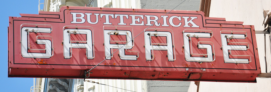 The Butterick Garage was built in 1918. This sign appears to be 1950s or earlier. [map] |