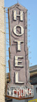 The Adrian Hotel was built in 1907. This sign is probably from the 1920s or 1930s. For more, see these websites: 1 and 2. [map] The Aldrich Hotel was built around 1910. This sign is probably from the 1930s. It had been painted blue and red with the wording for "Aldrich" and "Hotel" were reversed. The sign was restored to its original look in 2006. For more, see this website. [map] |