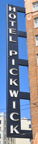 The Pickwick Hotel was built in 1926. This sign is probably from then. In 2015, the sign was painted black. For more, see this website. [map]