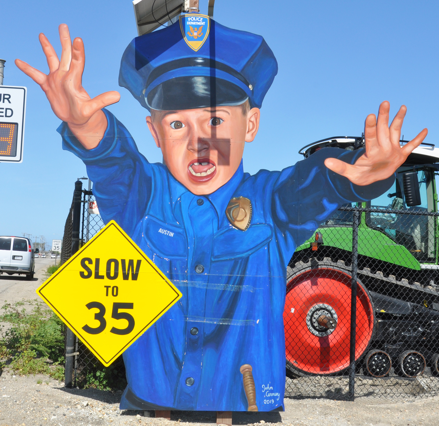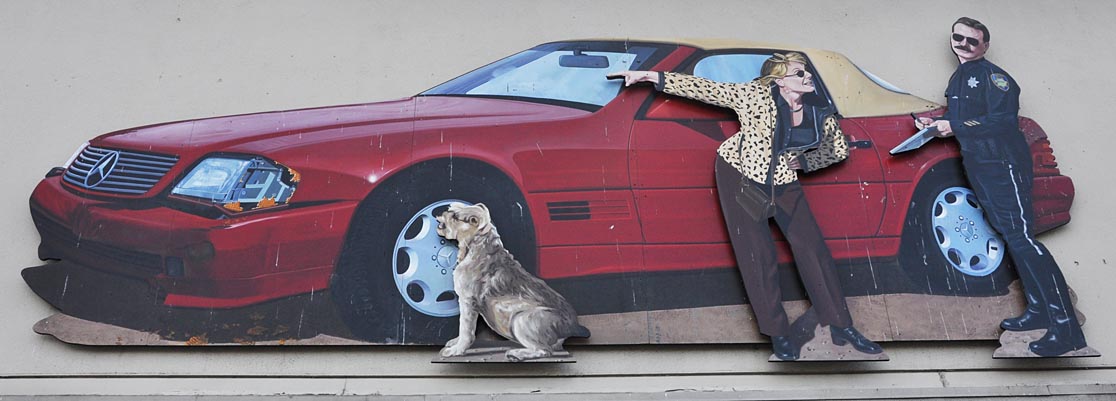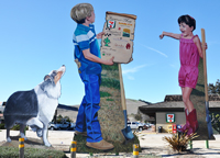 California Rodeo Salinas: man map, group map The Farm was created in 1995. The figures were repainted in 2002. map The Abbott Street Auto Body group was built in 2000. It was gone by 2018. The Cop Kids were built in 2019. The boy is installed on the east side of town next to Pacific Ag Rentals. The girl is installed on the west side of town next to PlantTape. They are each 12 feet tall. Boy map, Girl map The 18-foot-tall Harvey-Baker House Train sign re-enacts the arrival of the first rail line to Salinas in 1872. It was installed in 2010 behind the Harvey-Baker House, next to the train station. map The Artistic Hangups installation was created in 1997 and was originally installed near Dunlap, IA. The largest figure is about 16 feet tall. The man is hanging a painting of an Iowa landscape. It was replaced with a new installation ("Little Girl with Torn Teddy Bear and Dalmatian" shown on the next page). The Artistic Hangups group was moved to a picture frame shop in Salinas, CA. map WeatherTech Raceway Laguna Seca map The Terranova Ranch installation was created in 2020, during COVID-19. [map] |