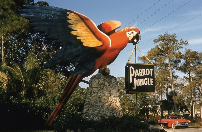 Parrot Jungle opened in 1936. In 2003, the tourist attraction moved and was renamed Jungle Island. This sign was built by the 1950s for Parrot Jungle. It was moved to the new location. For more, see these websites: 1 and 2. [map]
