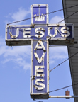The Tee Pee Liquor Mart sign is probably from the 1950s or 1960s. [map] The U-Turn Covenant Church cross-shaped "Jesus Saves" sign appears to be from the 1950s. The building previously housed the Bethel Fellowship Church. For more, see this website. [map] |