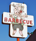 Mulkey's Restaurant opened in 1955. This sign is probably from then or a few years later. The embossed plastic, middle part of the sign might have revolved originally or it may have replaced another panel. Evidently, the restaurant had a franchise deal with the Henny Penny Corporation. For more, see these websites: 1 and 2. [map] |