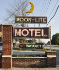The Big Wheel Restaurant opened in 1963 and closed in 2006. This photo is from 2006. By 2007, the restaurant and sign were gone. For more, see this website. The Moon-Lite Motel had opened by 1957 and this sign was there then. For more, see this website. [map] |